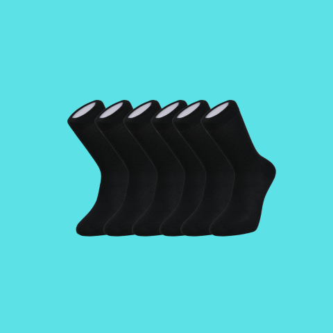 6 pairs of black merino Dress socks available in 4 sizes for our Perfect Fit Guarantee.