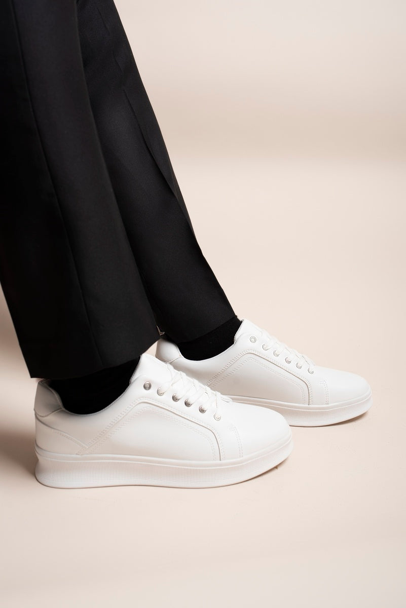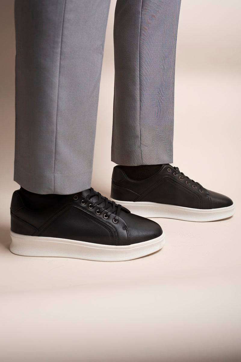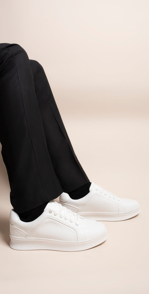 These low top trainers feature a sleek faux leather finish with subtle panel stitching and a clean white sole for a crisp edge. Easy to pair with jeans, cargos or tailored joggers — they’ll elevate your outfit without losing that laid-back feel.