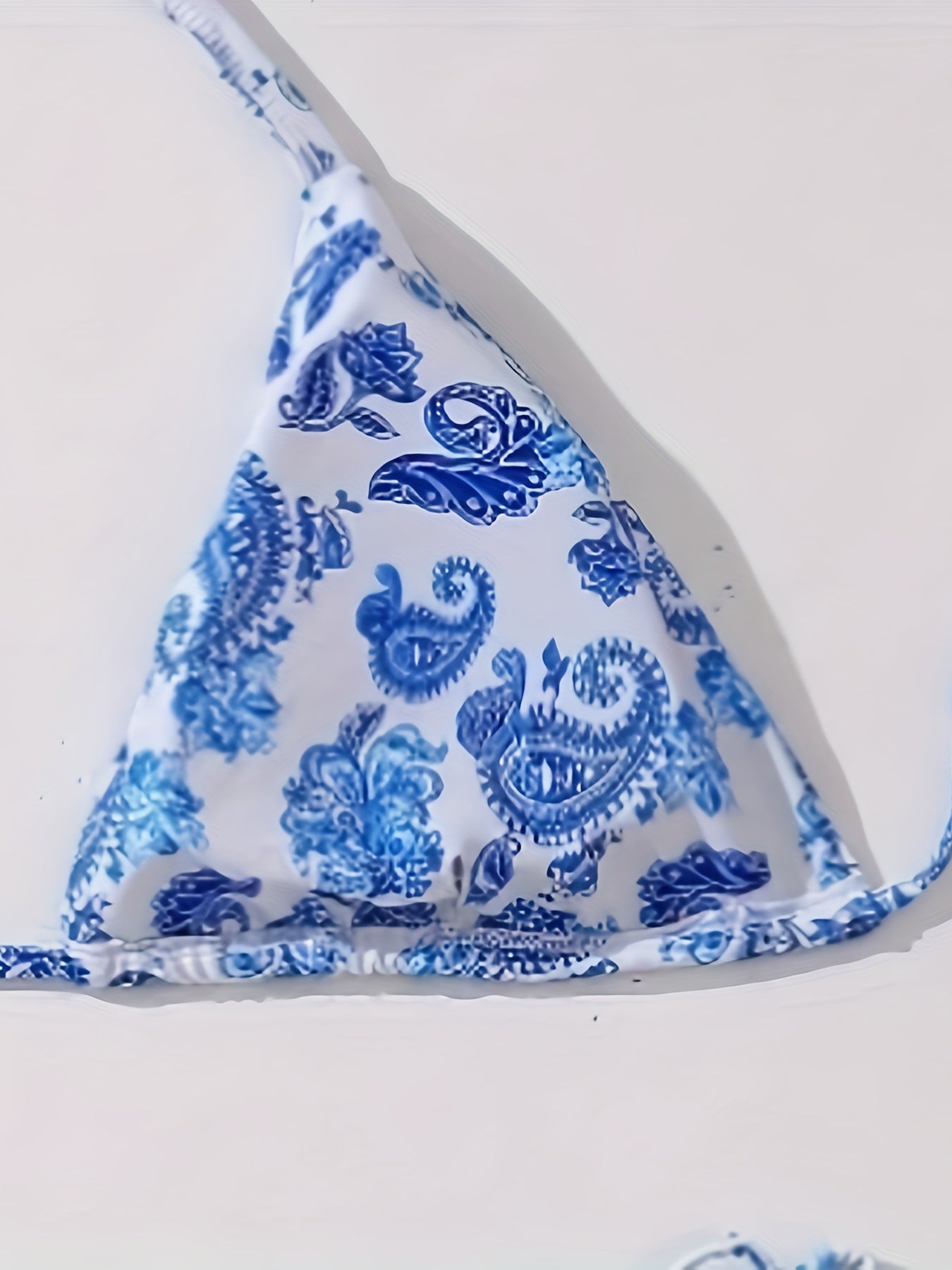 Women's Vacay Bikini Set, Plus Size Blue Paisley Floral Print Triangle Halter Tie Strap Backless Bra & Tie Side Panty Swimsuit 2 Piece Set